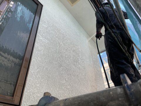 足場の架設が完了して高圧洗浄後に外壁塗装がはじまります。