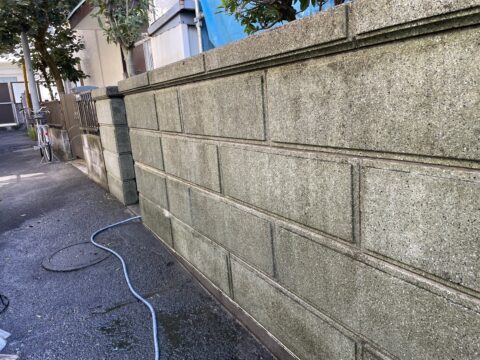 今回は外壁塗装の為の高圧洗浄時にブロック塀の高圧洗浄清掃を行っておりますが、ブロック塀の洗浄のみでも構いません。