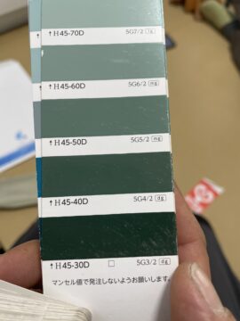 只今お客様と外壁塗装色のお打ち合わせ中です。