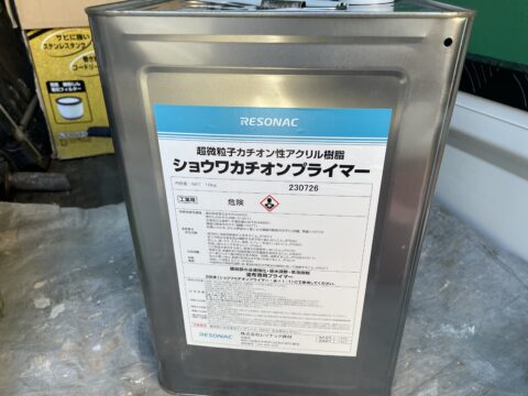 モルタルに付着性の高いカチオン系のプライマーを塗布