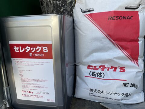 今回使用する材料はレゾナック建材さんのポリマーセメント系防水材「セレタック」になります。
