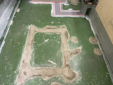 ポリマーセメント系防水材は乾燥も早く防水性も高いのでエレベーターピットの防水でしたら、下地が乾燥している状態であれば1日で完工することが可能です。
