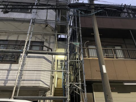 本日より北区赤羽南の集合住宅の外壁塗装工事がはじまりました。