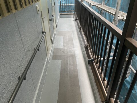 集合住宅の共用部廊下の床の塗装方法は?北区赤羽南の共用部廊下の床塗装