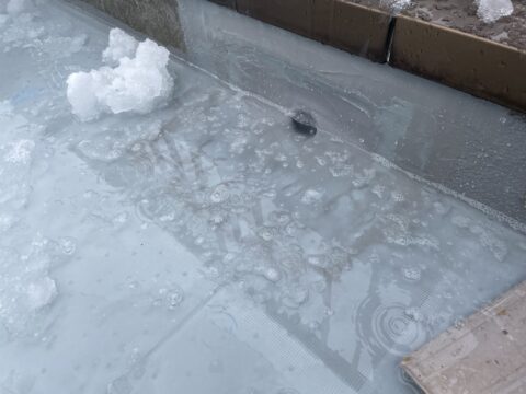 雪はもちろんですが、表面に氷がはっておりましたので、まずは雪かきと氷の撤去を行います1日しっかりと乾燥させました。