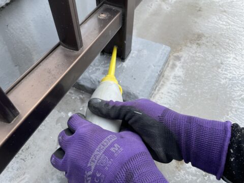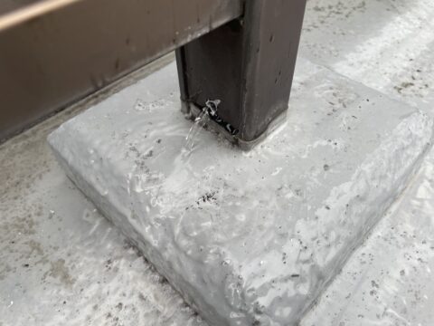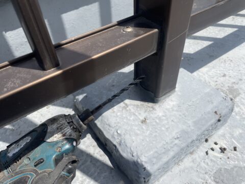 今回の工事の中で、屋上の手すりは雨漏りを誘発させている危険を感じ、穴を開けてウレタンを注入する工事をご提案させて頂きました。
