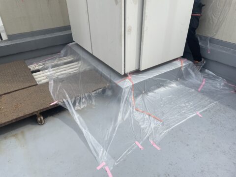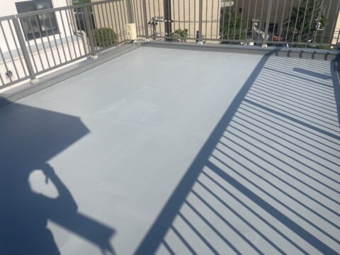 防水施工後5年目のトップコート塗り替えで防水層の寿命を伸ばす!@目黒区マンション屋上の防水面遮熱塗装