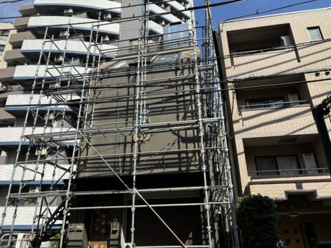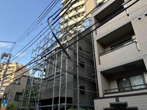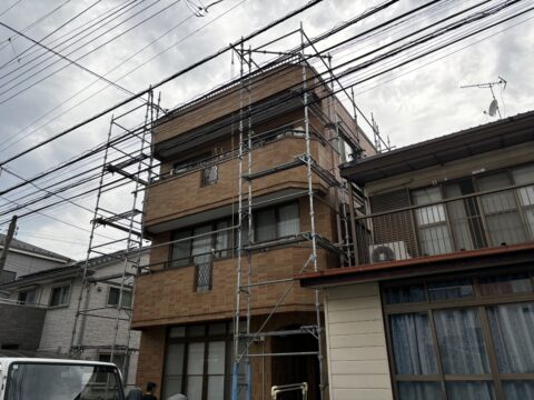 足場の架設も自社職人施工!江戸川区北小岩のタイル外壁の防水工事