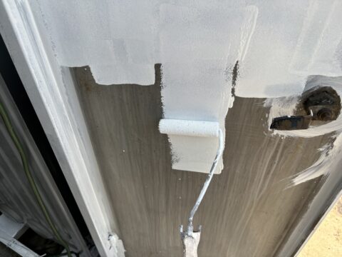 雨漏りを予防するため、セブンSという透明な防水材を使用して施工を行っていきます。