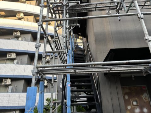 外壁足場は勿論、設備機器の交換工事での足場の架設も行っておりますので、ぜひご相談ください。