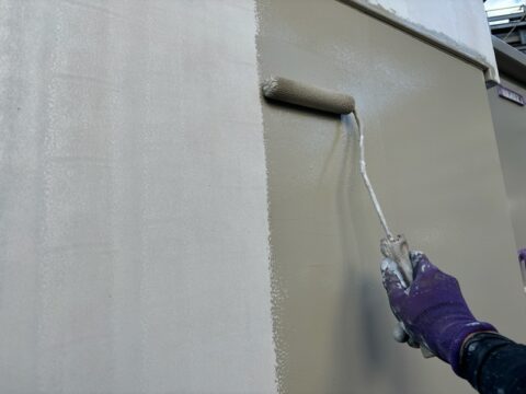 仕上げ塗装は2液シリコン樹脂塗料を塗布していきます。