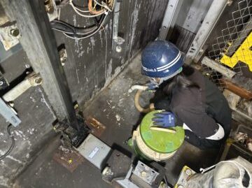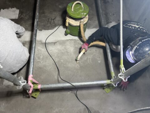 まずはエレベーターピット内を清楚し、突起やゴミを取り除きます