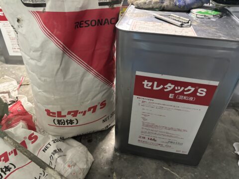 乾燥後に防水材セレタックSを2回塗布していきます。