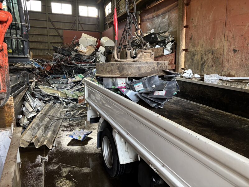 処理場では大型の磁石を使った機械で荷下ろしを行い、