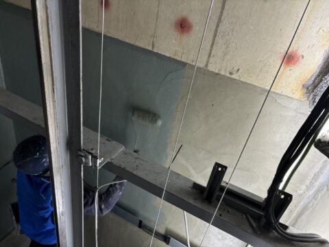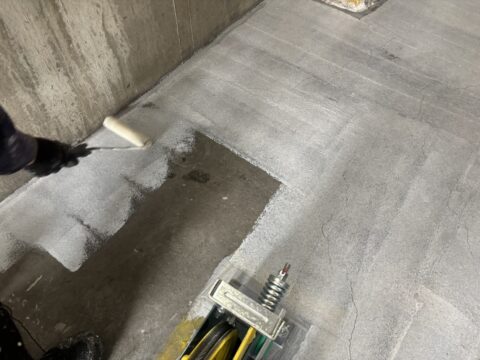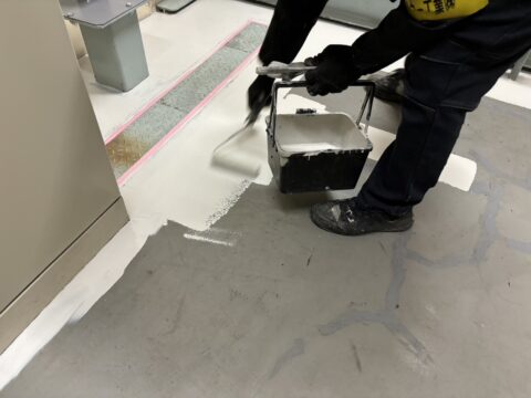 【神奈川県川崎市 エレベーター機械室塗床塗装】耐久性の高い水性アーキフロアーU使用!