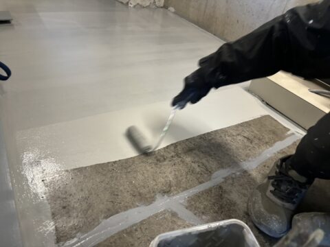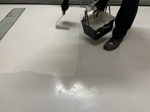 下塗りをしていきます。今回使用した製品はこちら↓『水性アーキフロアープライマー』