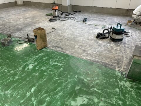 東京都中央区、機械室床の防塵塗装の現場です。