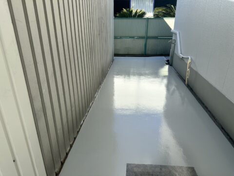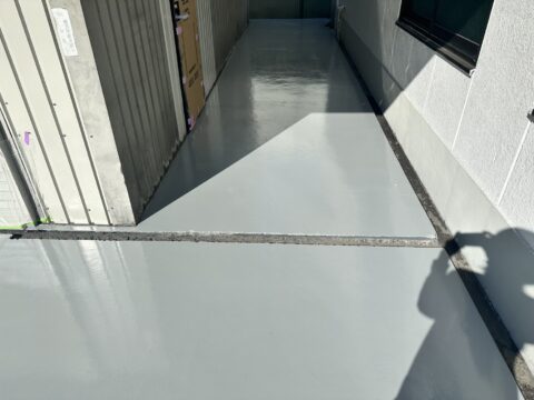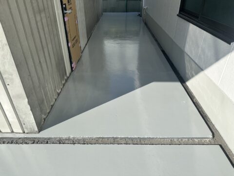 【埼玉県八潮市 外部通路床防塵塗装】フォークリフト走行可能!強靭なフローンヌルサット使用の防塵塗装