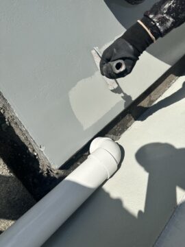 速乾ウレタンシーリング材料を使用してヒビや亀裂を埋めていきます。細い部分がヒビ。太いところが亀裂部分です。(総じてクラックといいます。)クラックが大きかったり、欠けている場合にはモルタル(セメントのようなもの)で補修する場合もあります。