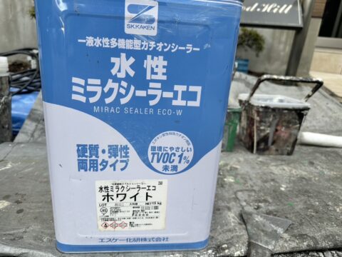 下塗りをします。水性ミラクシーラーエコを使用しています。