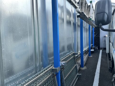 今回、弊社の倉庫柱をイメージカラーの青に塗り替えました!