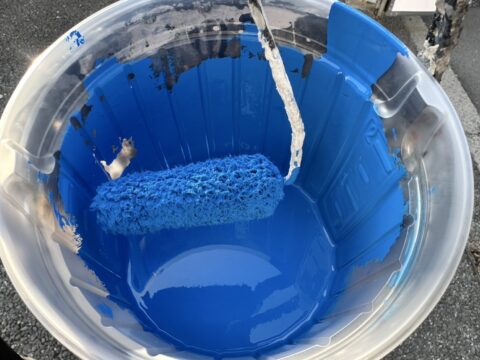 綺麗なスカイブルーの塗料で塗っていきます。