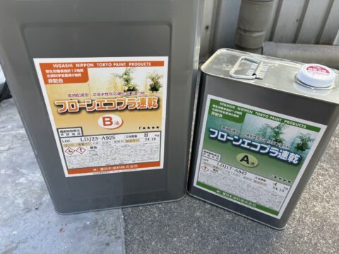 今回使用した塗料はこちら↓『フローンエコプラ速乾A液、B液』