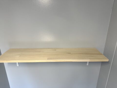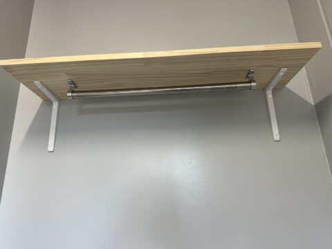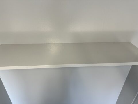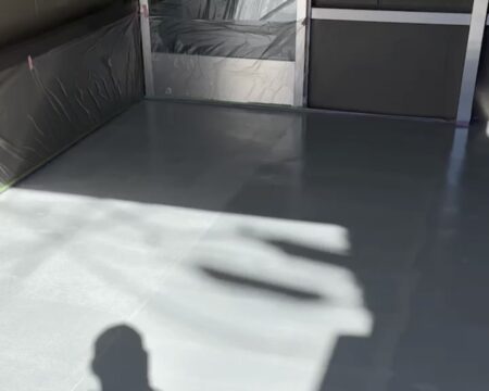 プライマーが乾きましたら床全体にフローンヌルサットを2回塗布します。 木製棚はクリーンマイルドシリコンを2回塗布して仕上げていきます。 施工後