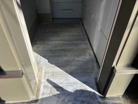 今回の現場、杉並区の新築トランクルーム入口にノンスリップ塗装を施しました。