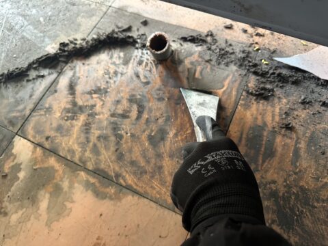 今回はエレベーターの入れ替え工事のタイミングで防水を行います。