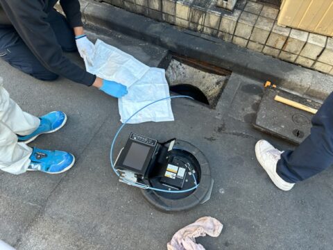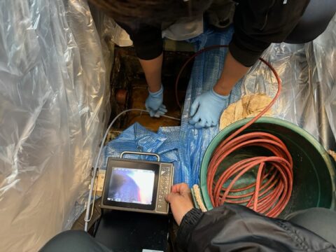 破損がある場合地中にある排水管の修理が必要な箇所を特定するために配管にカメラを入れて破損個所を特定する調査を行います。