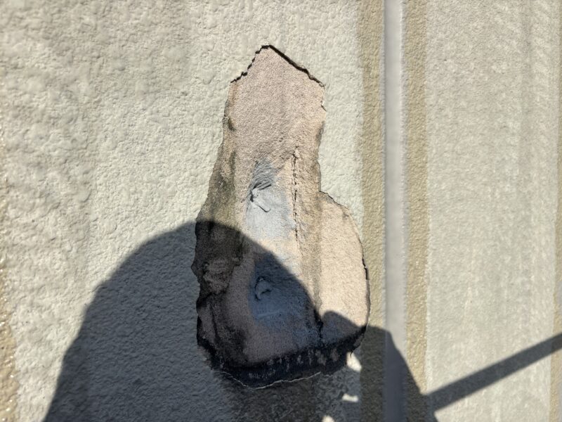 当初は内部の鉄筋が錆びる「爆裂現象」が発生しているのかと思われましたが、実際にシーリングを剥がしてみると、中から小さな「金属片」が出てきました。