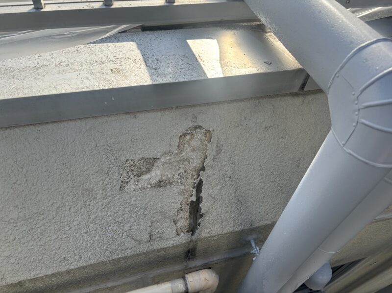 外壁の爆裂とは、外壁内部にある鉄筋や鉄骨が腐食して膨張し、コンクリートやモルタルを内側から押し出して破損させる現象のことです。