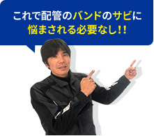 これで配管のバンドのサビに悩まされる必要なし!! 配管バンドは足場が無いと交換しにくい位置にありますので、
