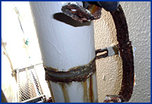 腐食したバンドを外し、交換しない支持部に錆止めを塗布します。