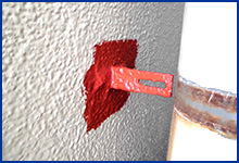 ※通常埋め込み式の支持金物は、STEP3、STEP4の錆止めのように塗装をして新しいバンドを取り付けますが、T字の場合はビスで止まっているだけなので外せば交換が可能となります。