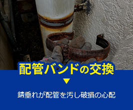 配管バンド部分の錆が気になります。