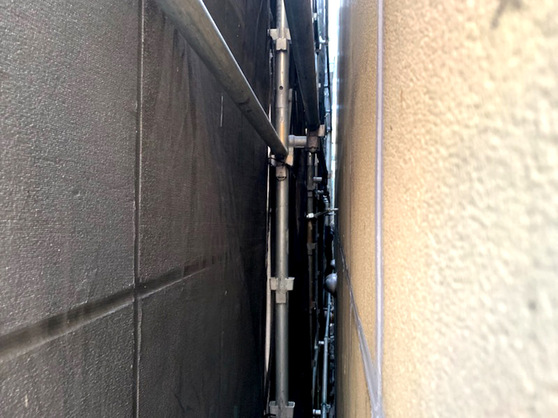 30㎝以下の狭い敷地の足場を架設しての塗装は足場があるので横移動ができず上下の移動しかできませんが、今まで塗装ができなかった外壁塗装も可能になります。
