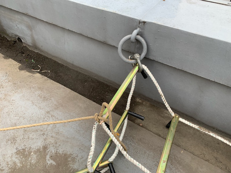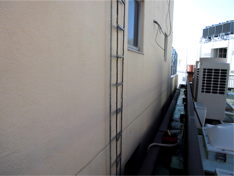 屋上からの昇降の際には昇降器具を設置するための笠木や丸環など、安全が確保できる状況で架設できるかという事が重要になります。現場調査の際に確認させていただきます。