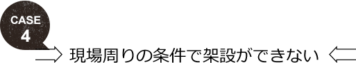 - 単管足場を使用して架設をすることが可能な場合がありますが、足場の横移動が難しいため移動は上下にしかできません。施工の手間が通常よりかかってきます。