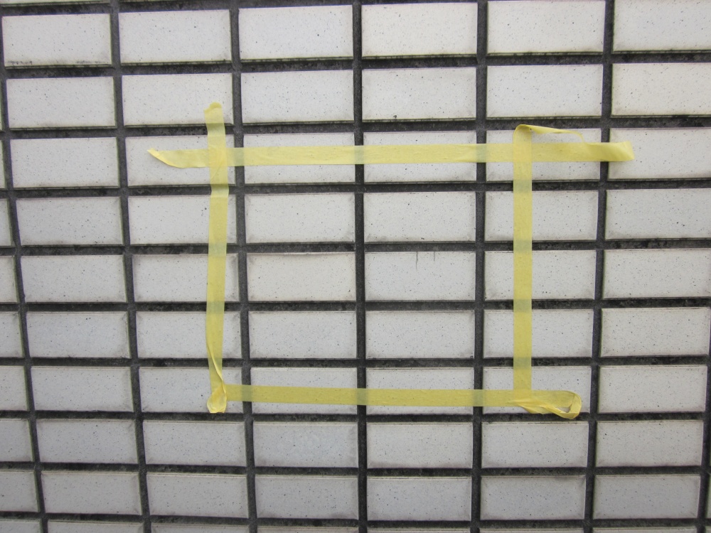 ①打診調査でタイルの浮きを特定し、注入範囲を決めます。